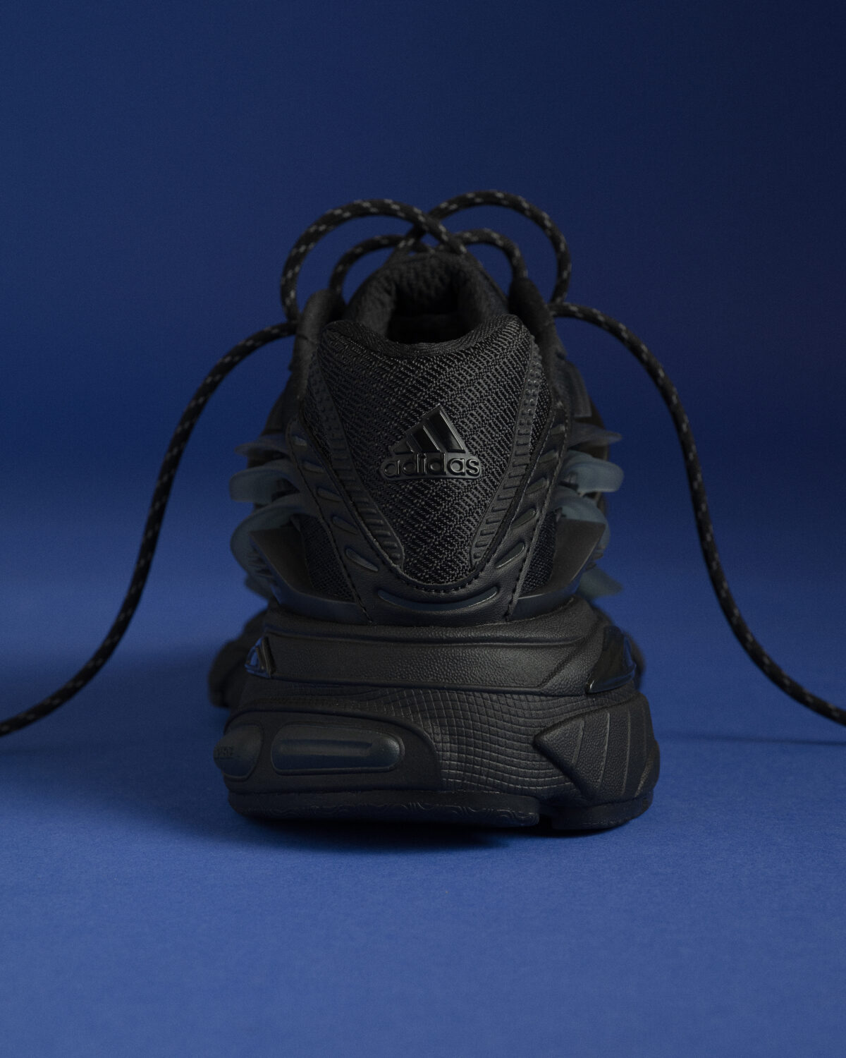 Конструкция Adistar Jellyfish базируется на использовании экспериментальных материалов. Основу составляет сетчатая база (mesh), обеспечивающая необходимую вентиляцию, поверх которой наложены синтетические и кожаные элементы. Такая комбинация создает текстуру, напоминающую на ощупь резину в определенных зонах, что не только защищает стопу, но и придает кроссовкам уникальный визуальный объем. Дополняют образ прочные веревочные шнурки в стиле «rope laces», гарантирующие надежную фиксацию.