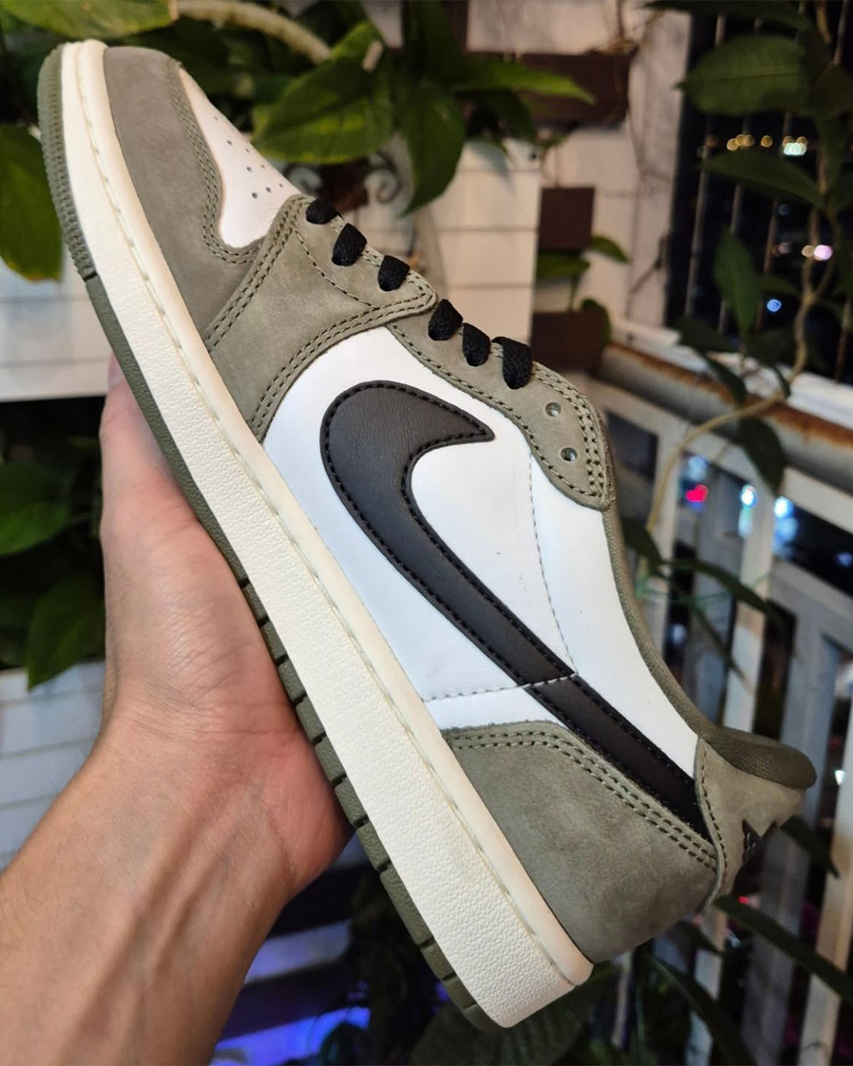 Кроссовки выполнены в сдержанной и стильной цветовой гамме, включающей оттенки Medium Olive, Black, Summit White и Sail. Такое сочетание создает землистый, винтажный образ, который, несмотря на отсутствие официальной коллаборации, вызывает ассоциации с популярными релизами Трэвиса Скотта. Эта эстетика пользуется огромным спросом среди ценителей уличной моды.
