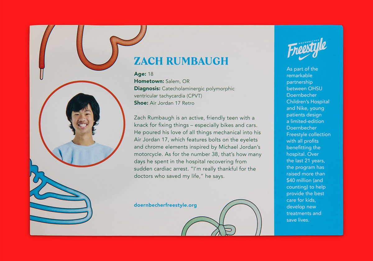 В основе концепции Air Jordan 17 “Doernbecher” лежит история стойкости самого дизайнера, Зака Рамбо. Пережив внезапную остановку сердца и проведя в больнице 38 дней, он сделал число «38» центральным символом своего творения. Этот номер многократно появляется на пятке, шнурках и подвесках, служа напоминанием о его пути к выздоровлению. Вдохновением для Зака стала его любовь к автомобилям, мотоциклам и механике — страсть, которая удивительным образом перекликается с увлечениями самого Майкла Джордана, известного своей коллекцией мотоциклов и собственной гоночной командой NASCAR.