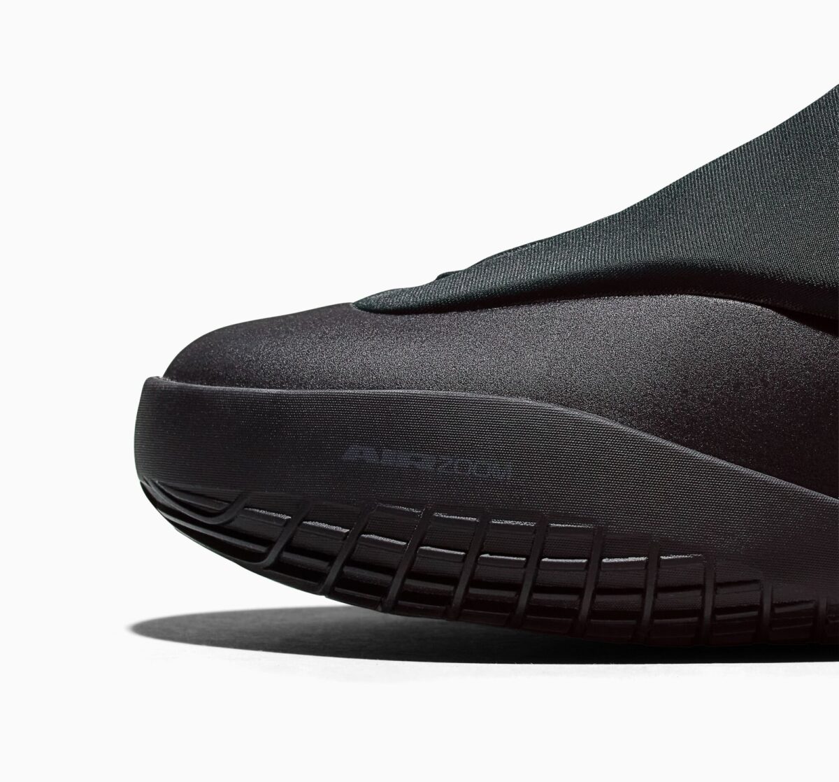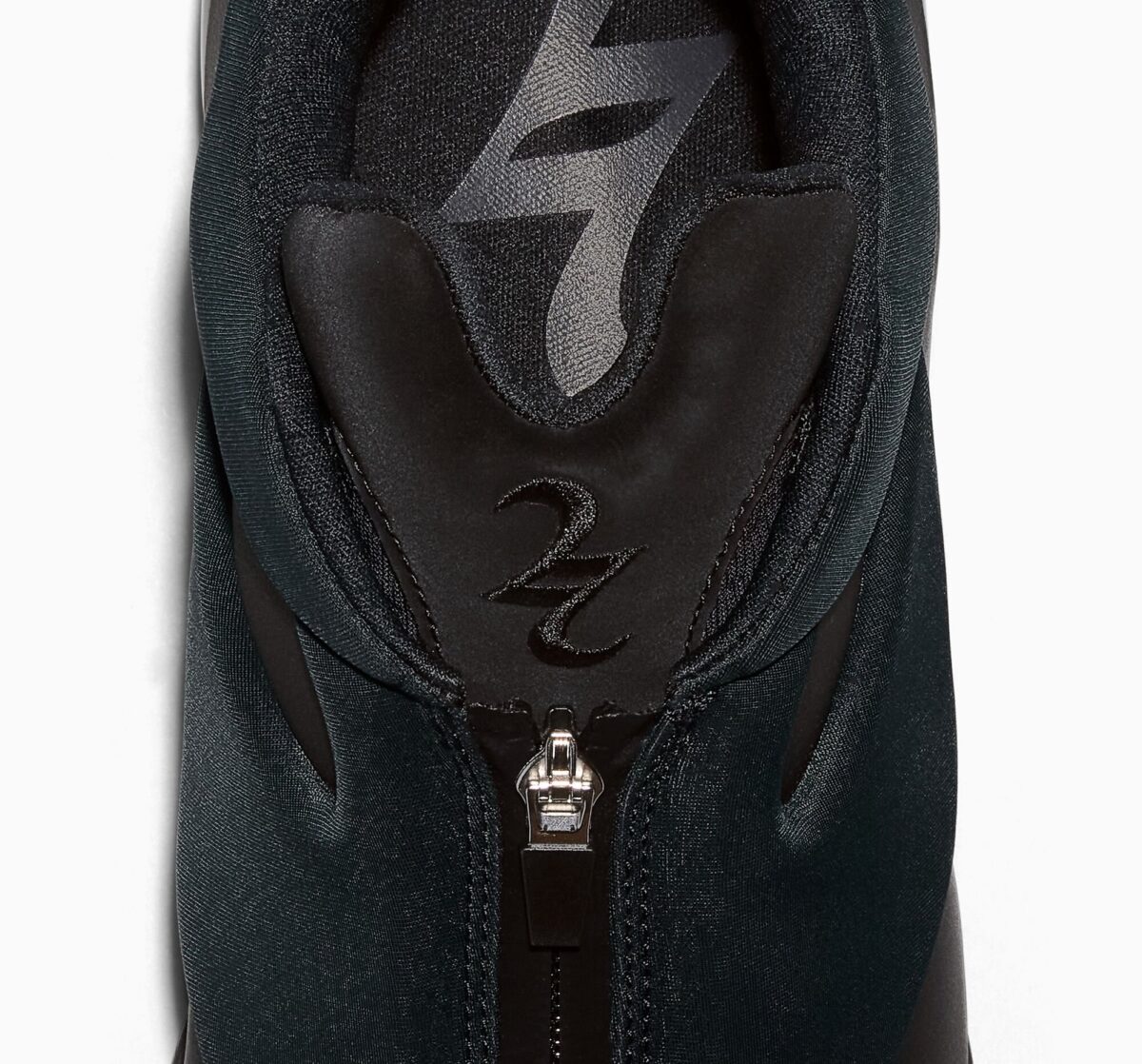 Одной из главных эстетических особенностей модели является система скрытой шнуровки, защищенная специальным кожухом на молнии (zipper shroud). Такое решение придает кроссовкам футуристичный, обтекаемый вид, минимизируя лишние детали. Под молнией на язычке спрятан вышитый темно-серыми нитками логотип SGA, нарисованный от руки. Эта деталь подчеркивает премиальный статус коллаборации и внимание дизайнера к мелочам, которые не сразу бросаются в глаз.