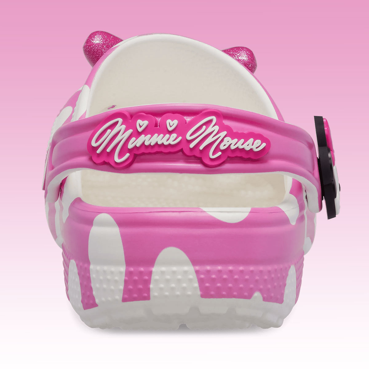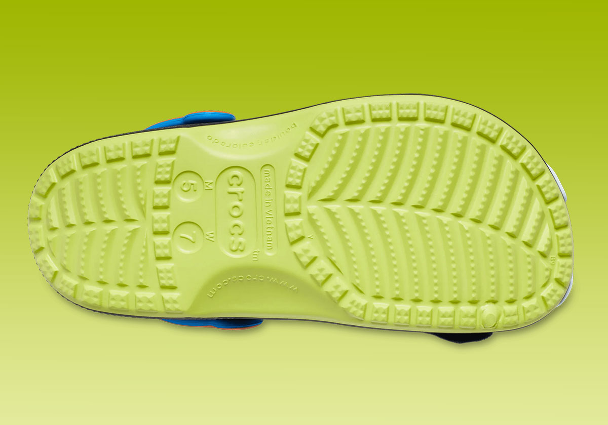 Внешний вид кроссовок-клогов вдохновлен образом Микки Мауса: черная верхняя часть имитирует мех персонажа, а на носке красуются знаменитые красные шорты в белый горошек. Внимание к деталям поражает — на поверхности модели расположены формованные аппликации, в точности передающие черты лица Микки. Цветовая гамма Multi гармонично распределена по всему силуэту, включая контрастные элементы на ремешке и подошве, отсылающие к повседневной одежде героя.