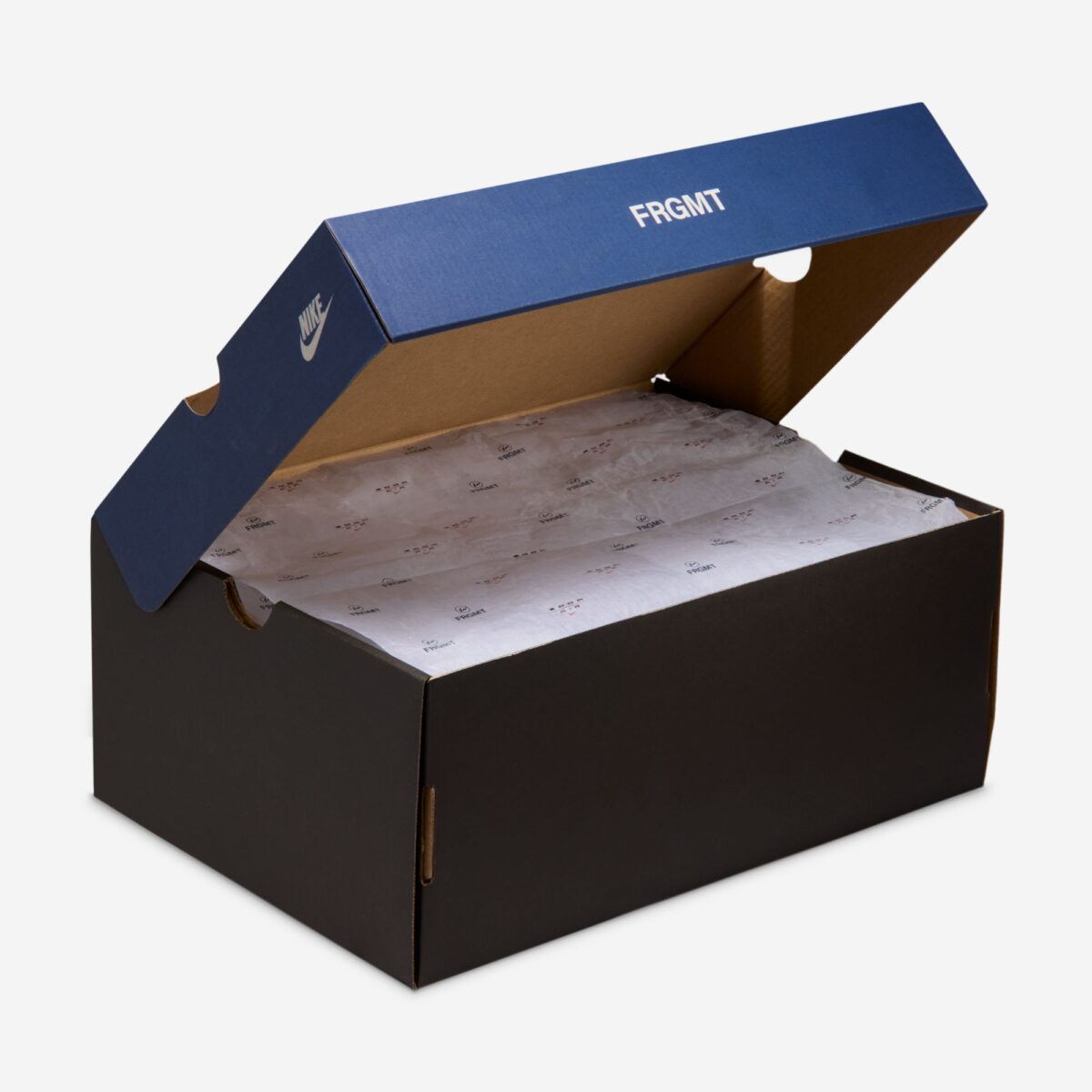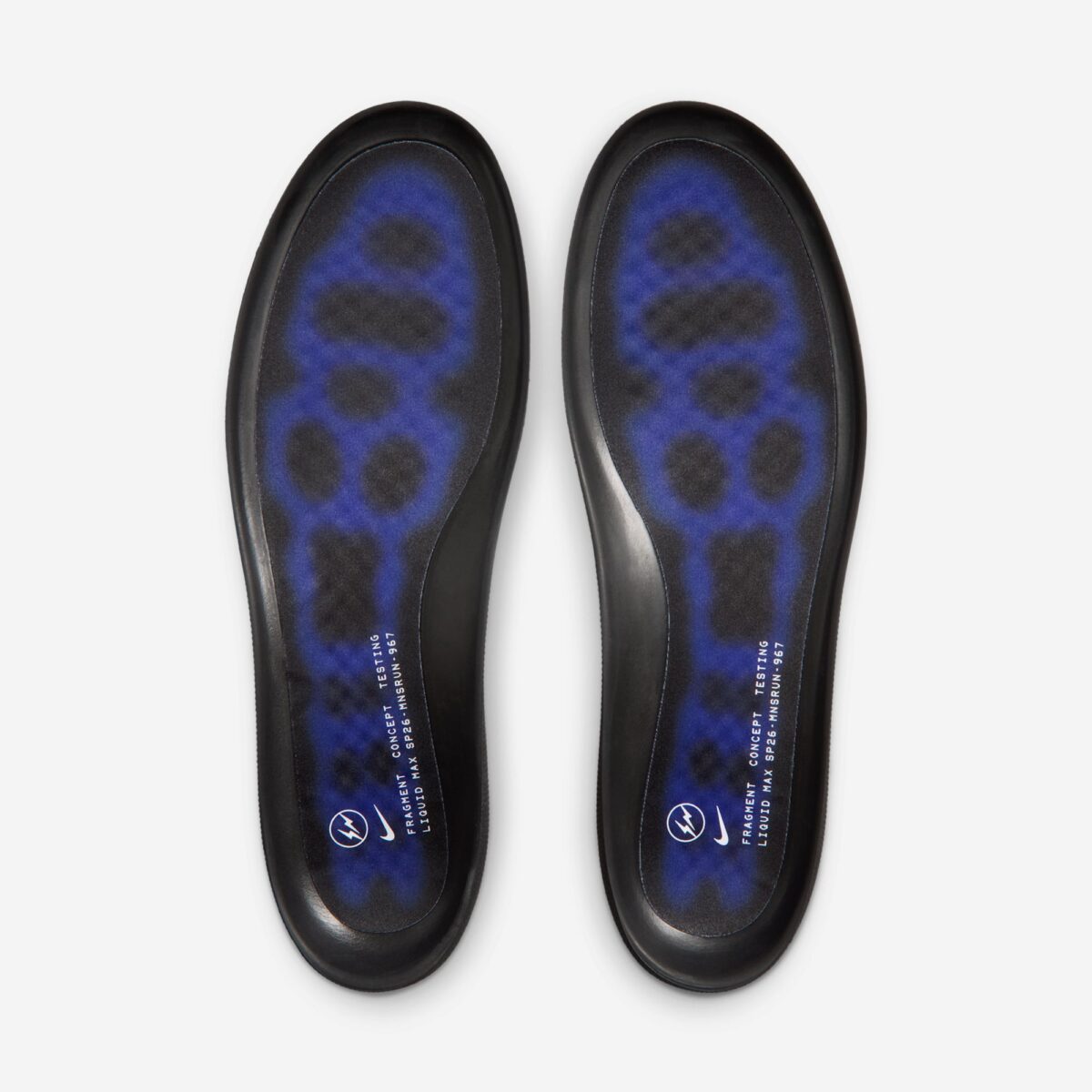 Несмотря на общую монохромную палитру, модель наполнена уникальными акцентами. На боковых панелях, подошве и стельках нанесен индустриальный текст «fragment concept testing». Традиционный для Фудзивары королевско-синий цвет скрыт внутри на стельке и язычке, а хромированные логотипы Swoosh добавляют модели премиальный лоск. Дополнительный комфорт обеспечивает внутренняя промежуточная подошва из пены Cushlon.