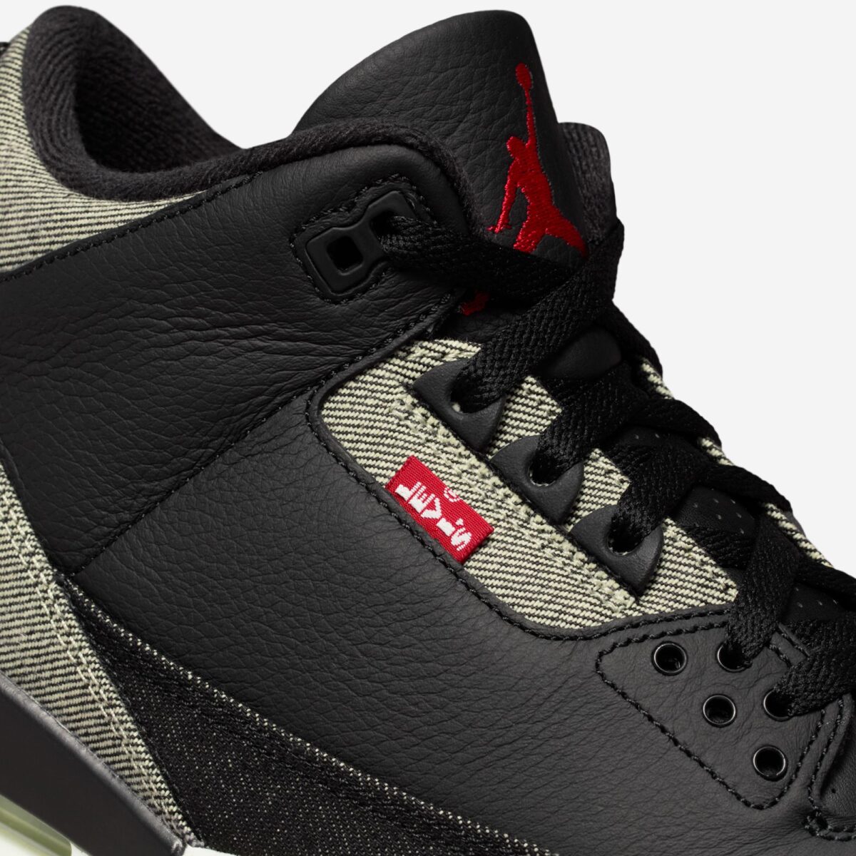 Внимательные коллекционеры оценят минималистичный подход к деталям. Традиционная красная бирка Levi’s аккуратно расположена на боковой стороне кроссовка, добавляя яркий акцент в общую цветовую гамму Denim/Black/Gym Red. На пятке сохранено классическое брендирование Nike Air, что подчеркивает уважение к оригинальному наследию Jordan Brand и сохраняет аутентичность силуэта 1988 года.