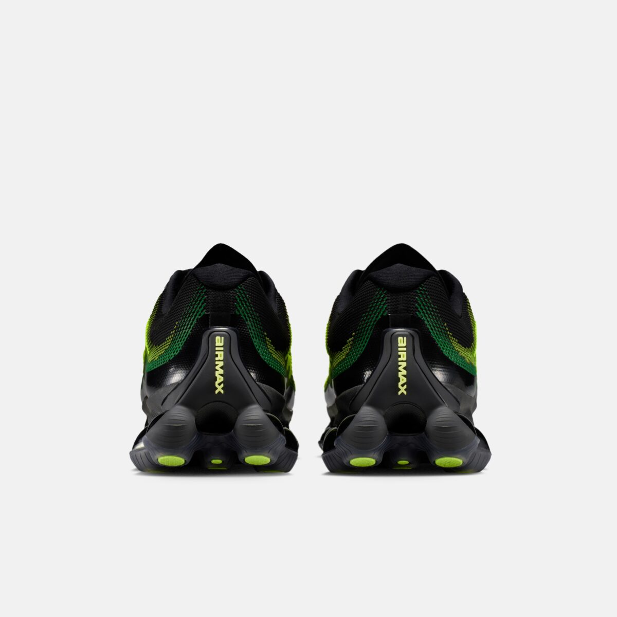 Нижняя часть Nike Air Liquid Max выполнена из темной тонированной полупрозрачной резины, которая не только защищает воздушные капсулы, но и делает акцент на их сложной геометрии. Уплощенные трубчатые элементы протектора создают так называемую «подушкообразную корку», гарантируя стабильность на любых поверхностях. Этот экспериментальный подход к подметке позволяет достичь мягкого отскока, приближая технологию Air к её 40-летнему юбилею в лучшей форме.