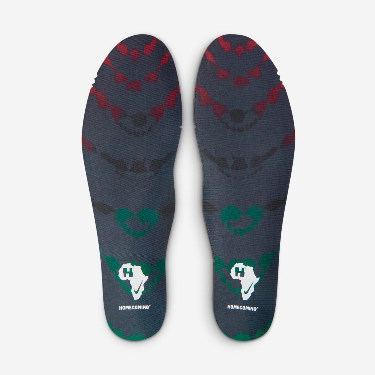 Цветовая палитра Black, Court Green и University Red напрямую отсылает к пан-африканскому флагу. Черный цвет основы символизирует народ, красный — кровь, объединяющую предков, а зеленый — природные богатства Африки. Визуально кроссовки выглядят динамично и энергично, подчеркивая живой ритм фестиваля HOMECOMING, который ежегодно собирает представителей музыки, моды и спорта в Нигерии.
