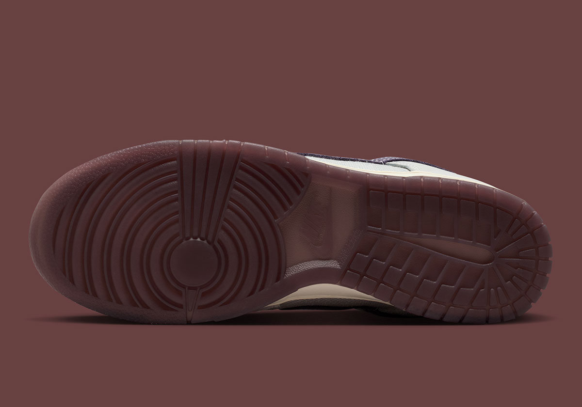 Цветовое решение Multi-Color базируется на спокойных, земляных тонах. Основной оттенок Off-White гармонично переплетается с акцентами Spruce Aura — нежным пастельно-зеленым цветом, который украшает фирменный Swoosh и внутреннюю подкладку. Глубину композиции придают элементы Moon Particle и Dark Raisin, расположенные на подошве и заднике. Использование промежуточной подошвы цвета Sail вместо классического белого позволяет избежать резких контрастов, сохраняя винтажный шарм.