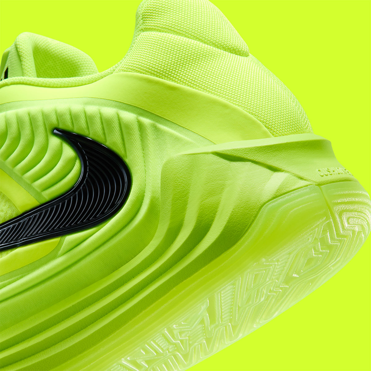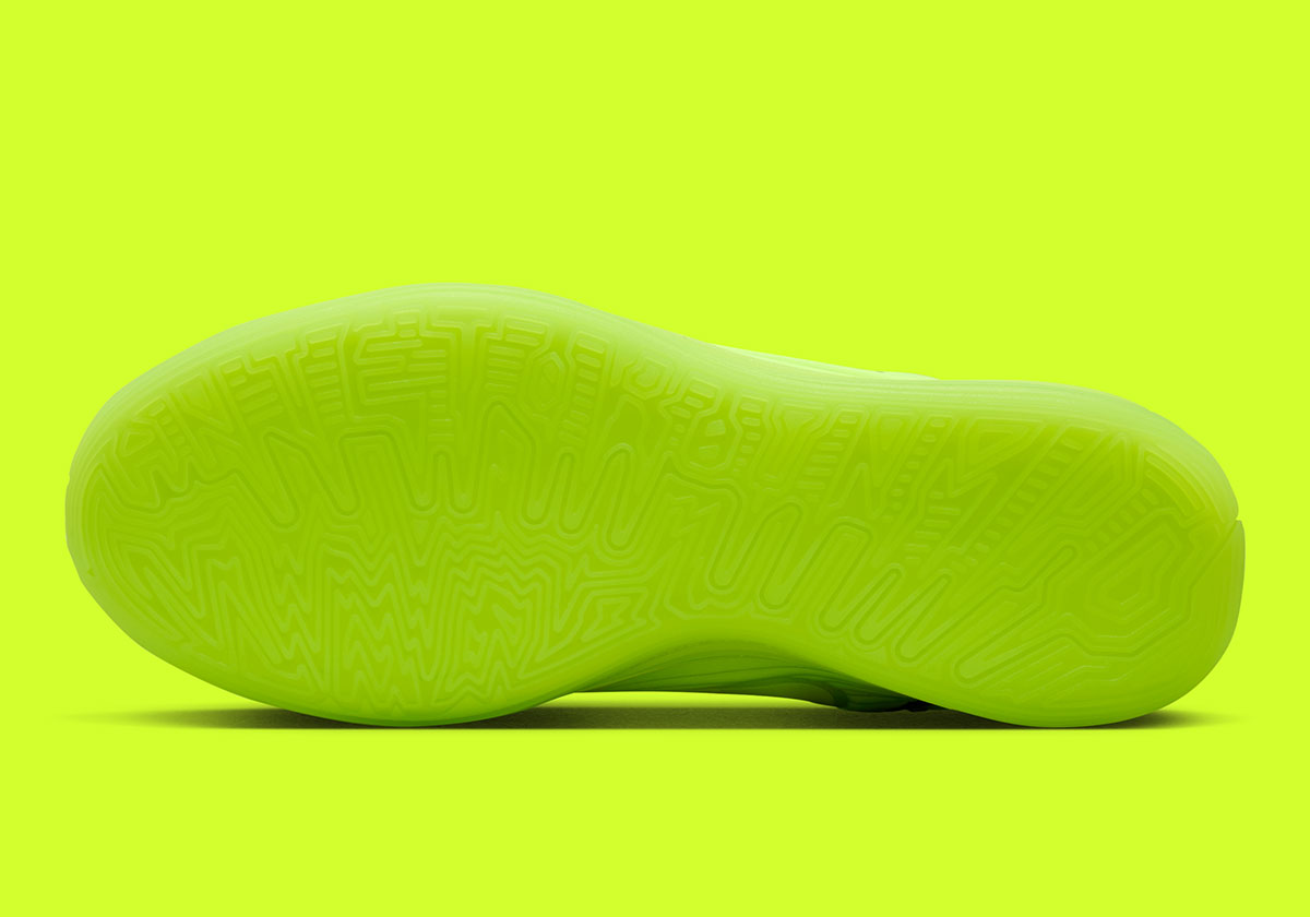 Основной акцент в версии HF3450-700 сделан на бескомпромиссный цвет Volt. Ярко-желтый верх доминирует в облике кроссовок, создавая мощный визуальный эффект на площадке. Контрастный черный логотип Swoosh, проходящий через среднюю часть стопы, служит ключевым стилистическим элементом, подчеркивая стремительный силуэт модели без использования излишней графики.
