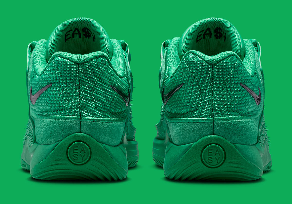 Кроссовки наполнены знаковыми деталями: глянцевый черный логотип Swoosh на пятке контрастирует с зеленым основанием, а вышивка «EASY» на внутреннем воротнике напоминает о хладнокровном стиле игры Дюранта. Модель поставляется в специальных черных коробках, что связывает её с коллекцией All-Star 2026 и выделяет среди стандартных релизов. Внутренняя отделка с мягким сетчатым язычком и анатомическим стельками довершает образ премиального продукта.
