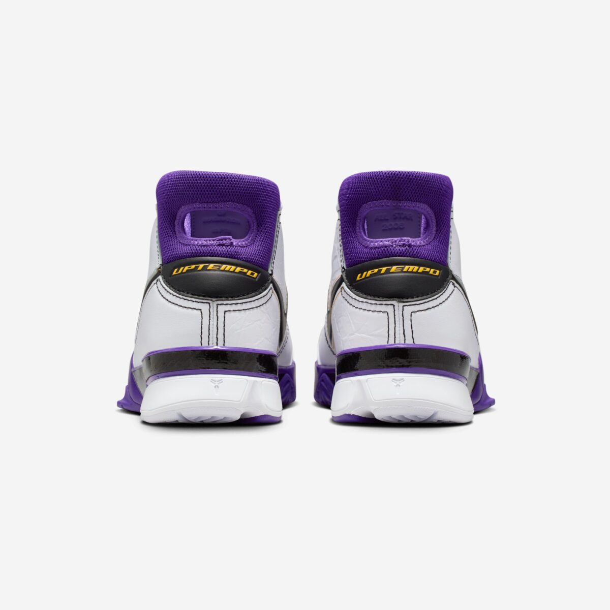 Внешний вид модели выполнен в классических цветах «Лос-Анджелес Лейкерс». Верх кроссовок изготовлен из премиальной белой кожи, которая контрастирует с черными деталями и яркими акцентами Court Purple. Особое внимание уделено деталям: стелька кроссовок украшена упоминанием четырех городов — Лос-Анджелеса, Хьюстона, Атланты и Денвера, каждый из которых связан с выдающимися достижениями «Черной Мамбы».