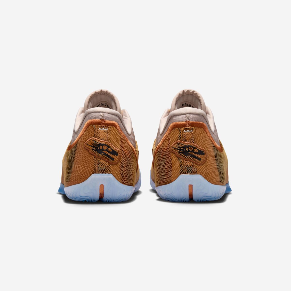 Дизайн кроссовок наполнен глубоким символизмом. Верхняя часть из технологичного трикотажа украшена вышивкой в виде летящих комет, по форме напоминающих динозавров, что отсылает к теме «вымирания» соперников. Нижняя часть усилена брызговиком с выраженной текстурой рептилий, имитирующей чешую раптора. Особое внимание привлекает пятка, где расположен вышитый логотип в виде ископаемого черепа раптора, окончательно закрепляющий исторический подтекст названия “LeBronto”.