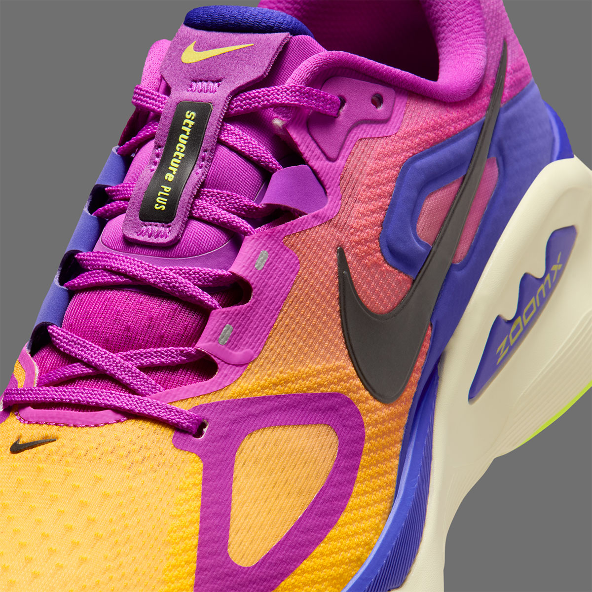 Главной особенностью Nike Structure Plus стало первое в истории серии сочетание двух премиальных пеноматериалов: ZoomX и ReactX. Верхний слой из мягкой пены ZoomX обеспечивает исключительный возврат энергии и мягкость при каждом шаге, в то время как нижний слой из более плотной пены ReactX гарантирует стабильность и долговечность. Такая комбинация создает уникальное ощущение под стопой, недоступное в предыдущих итерациях модели.