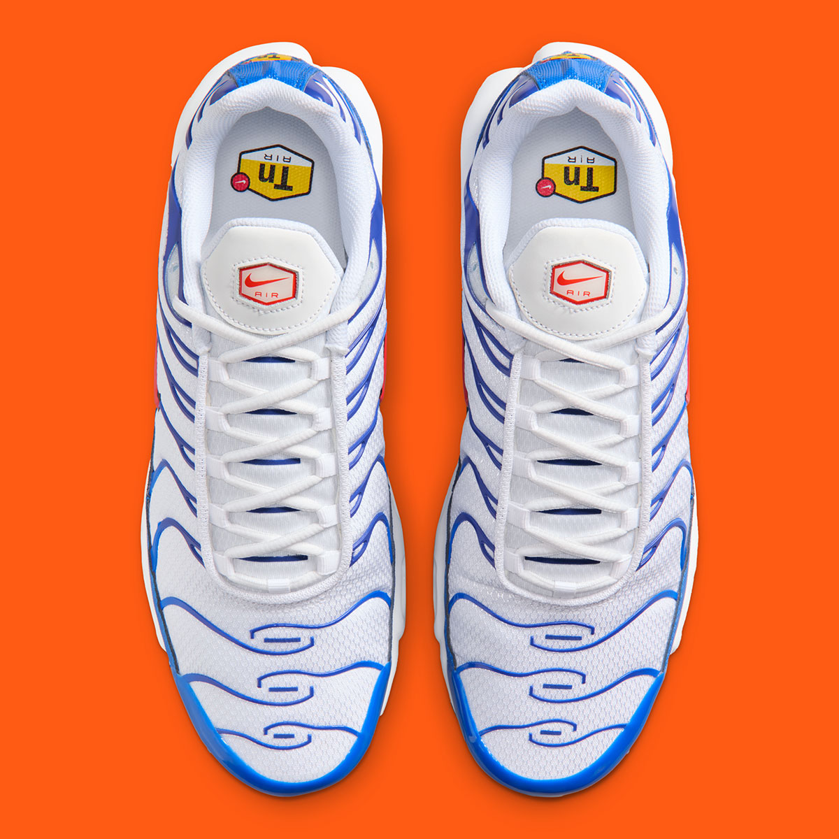 Nike Air Max Plus возвращается в 2026 году в эффектном исполнении, вдохновленном легендарной эстетикой баскетбольного клуба New York Knicks. Модель с артикулом DM0032-107 сочетает в себе чистый белый верх с контрастными деталями Signal Blue и Team Orange, создавая яркий летний образ. Этот неофициальный трибьют спортивному наследию Нью-Йорка подчеркивает прочную связь силуэта с уличной модой и культурой мегаполисов, где Air Max Plus давно стал иконой стиля.