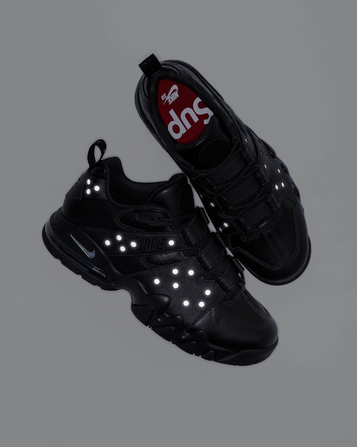 Внимание к деталям проявляется в тисненых логотипах Swoosh из термопластичного полиуретана (TPU) на пятке, которые добавляют структурной жесткости. Логотип Supreme Box Logo традиционно украшает красные стельки, а ко-брендинг Nike SB красуется на задниках. В комплекте с кроссовками поставляются дополнительные шнурки и эксклюзивный двойной брелок, подтверждающий статус лимитированного издания.