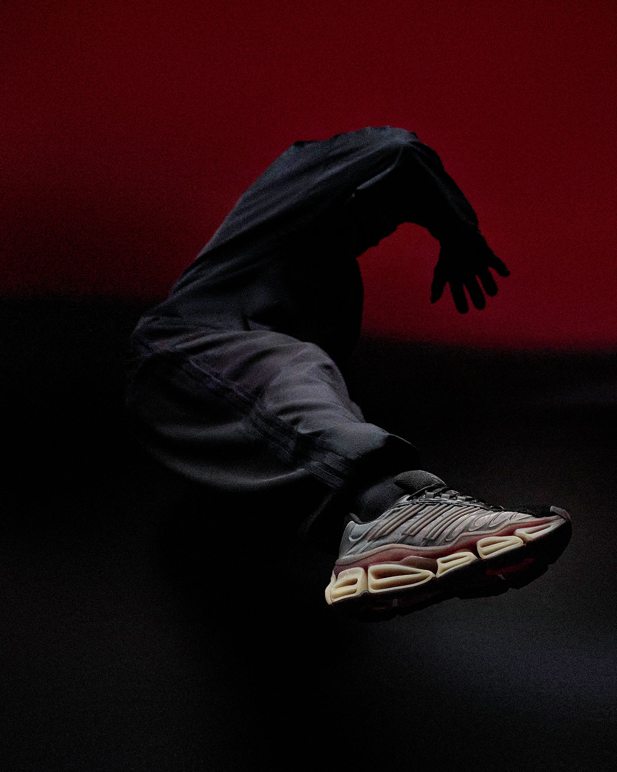 Главной технической особенностью модели является возрожденная система Megaride. Массивная и отзывчивая платформа обволакивает всю подошву, обеспечивая исключительный комфорт и мягкость при ходьбе. Контрастный красный пенный материал на аутсоле не только улучшает амортизационные свойства, но и создает яркий визуальный акцент, подчеркивая архитектурный профиль кроссовка и его готовность к «преодолению гравитации».